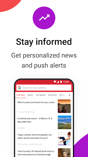 Opera mini provides users with a night mode, the ability to sync data across devices, change the default search engine, and save pages so you can read them.